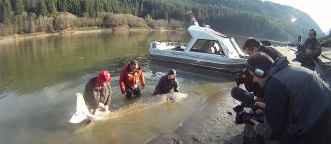 Three Fishermen: a Brit, Brazilian & Canadian battle it out in the rivers & oceans of 3 continents - Europe & North & South America to see who can catch the biggest fish. Fun? Fish? Plenty of it! The fish in the picture was one of the 10 biggest Sturgeon fish ever caught in the Fraser River outside Vancouver - it weighs almost 1000lbs, 10.5 feet long & is over 150 years old. The old fish was just catching its breath before we had to let it go...